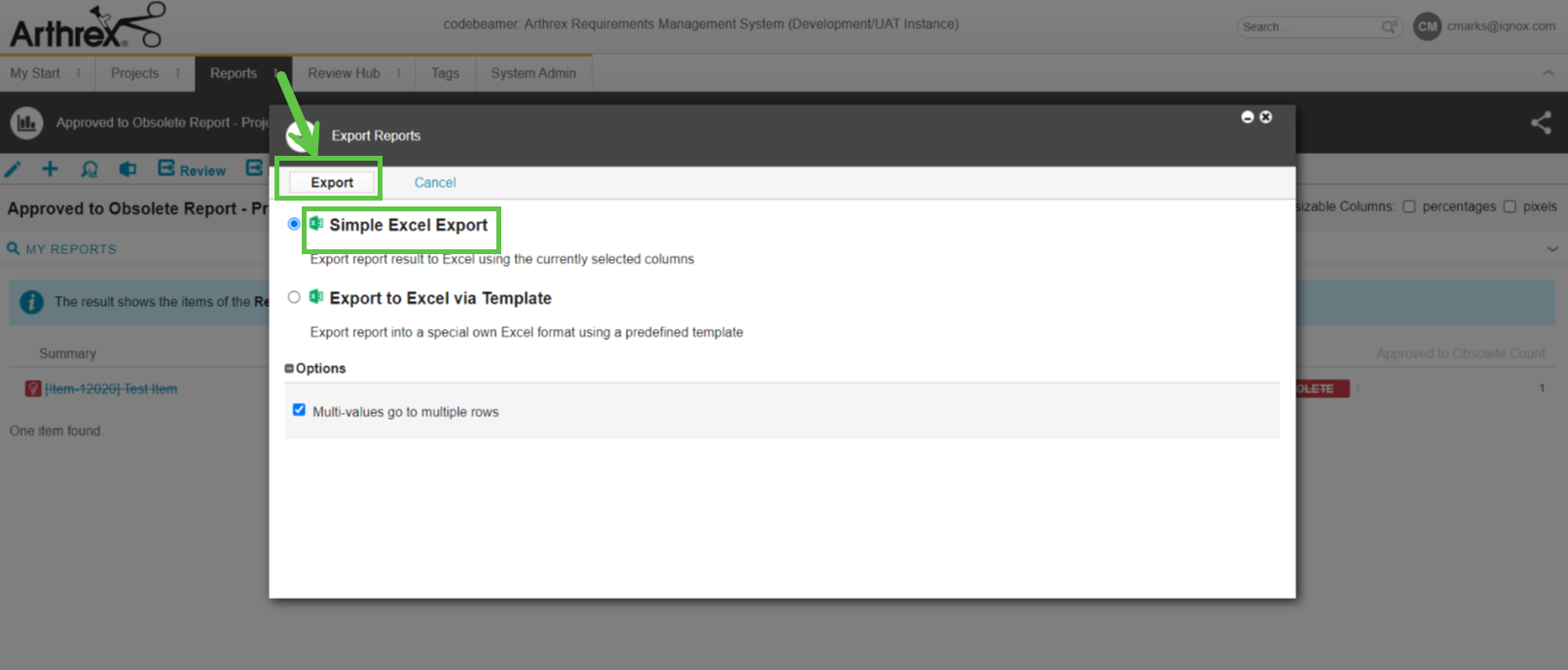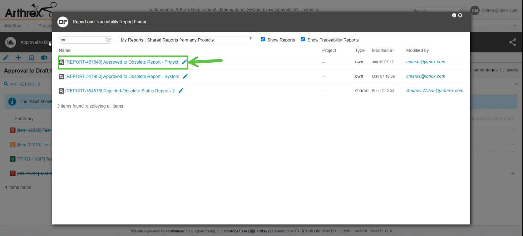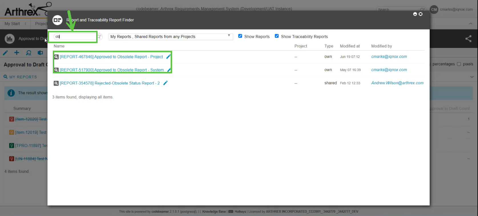 Here, you will find two versions of the report, Project-specific and System-specific reports.