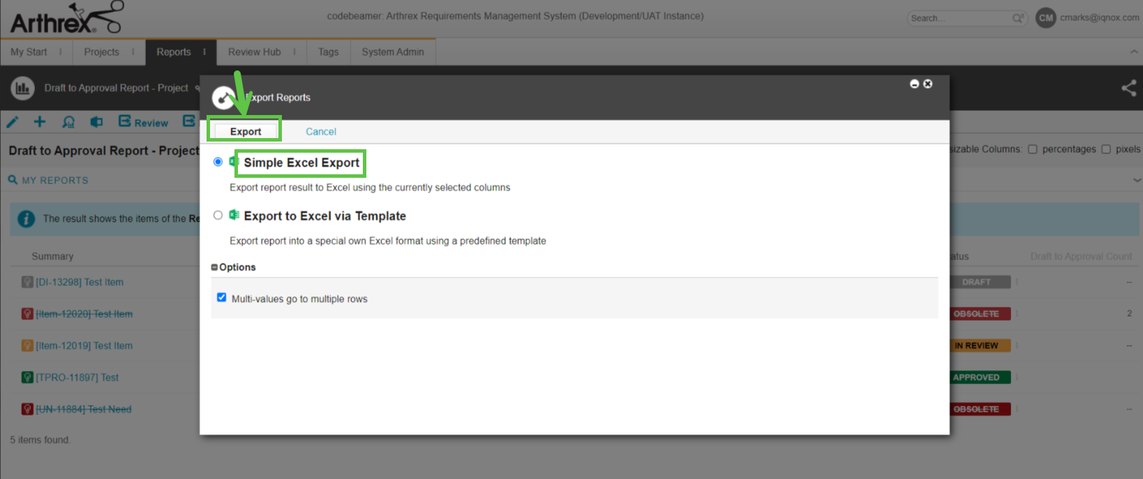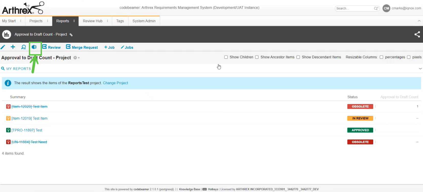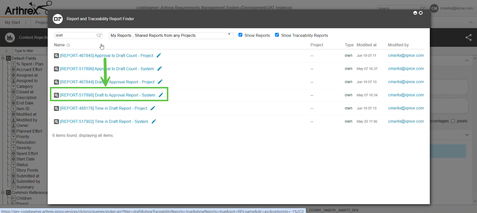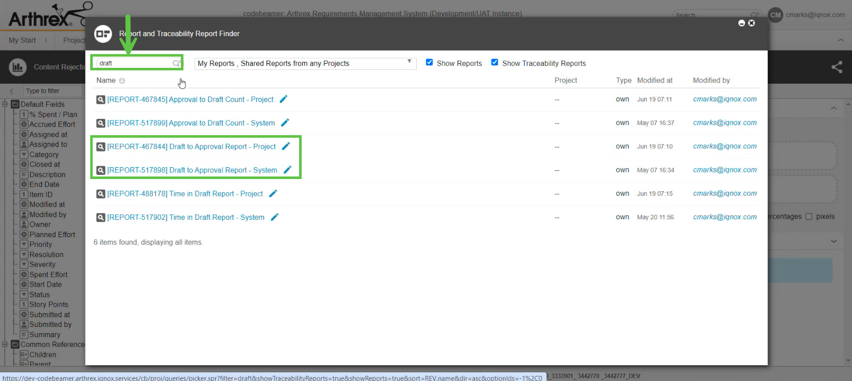 Here, you will find two versions of the report, Project-specific and System-specific reports.