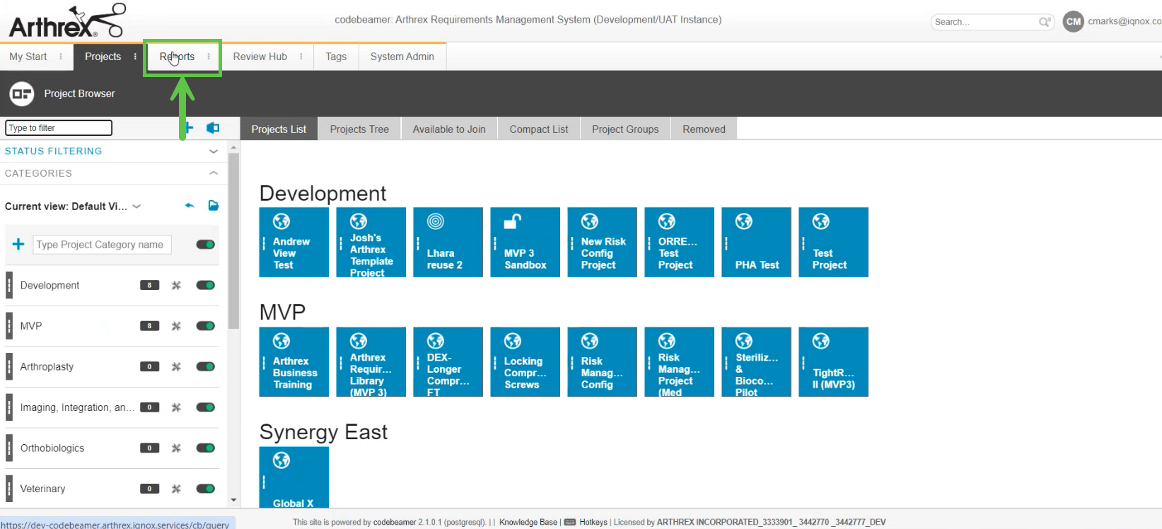 Go to the Projects tab and Select the Project "Arthrex Template 2".