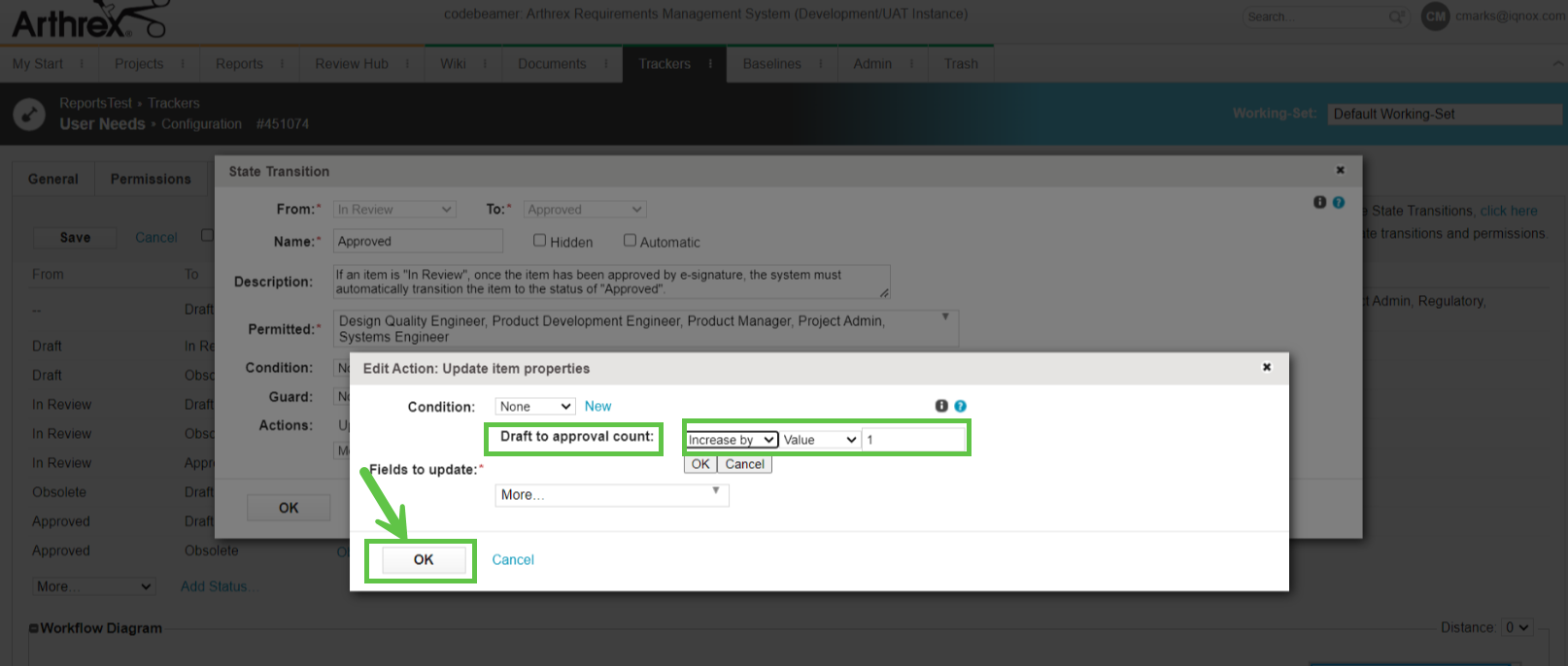 Keep the Draft to approval count as 'Increase by' value 1 and click OK.