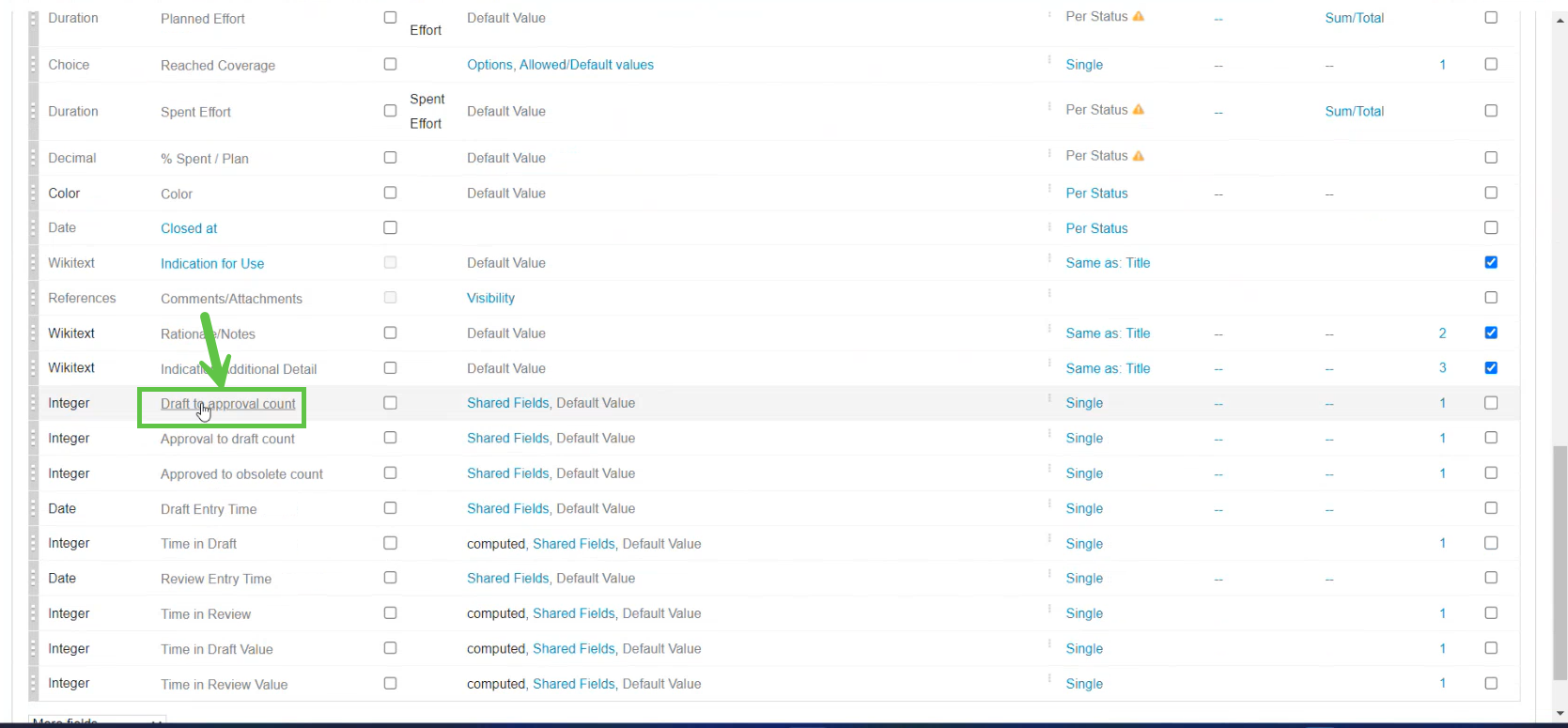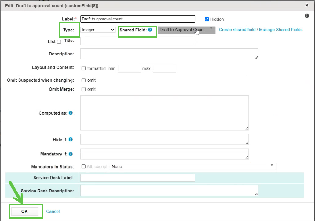Keep Type as 'Integer' and Shared Field as 'Draft to approval count and click OK.