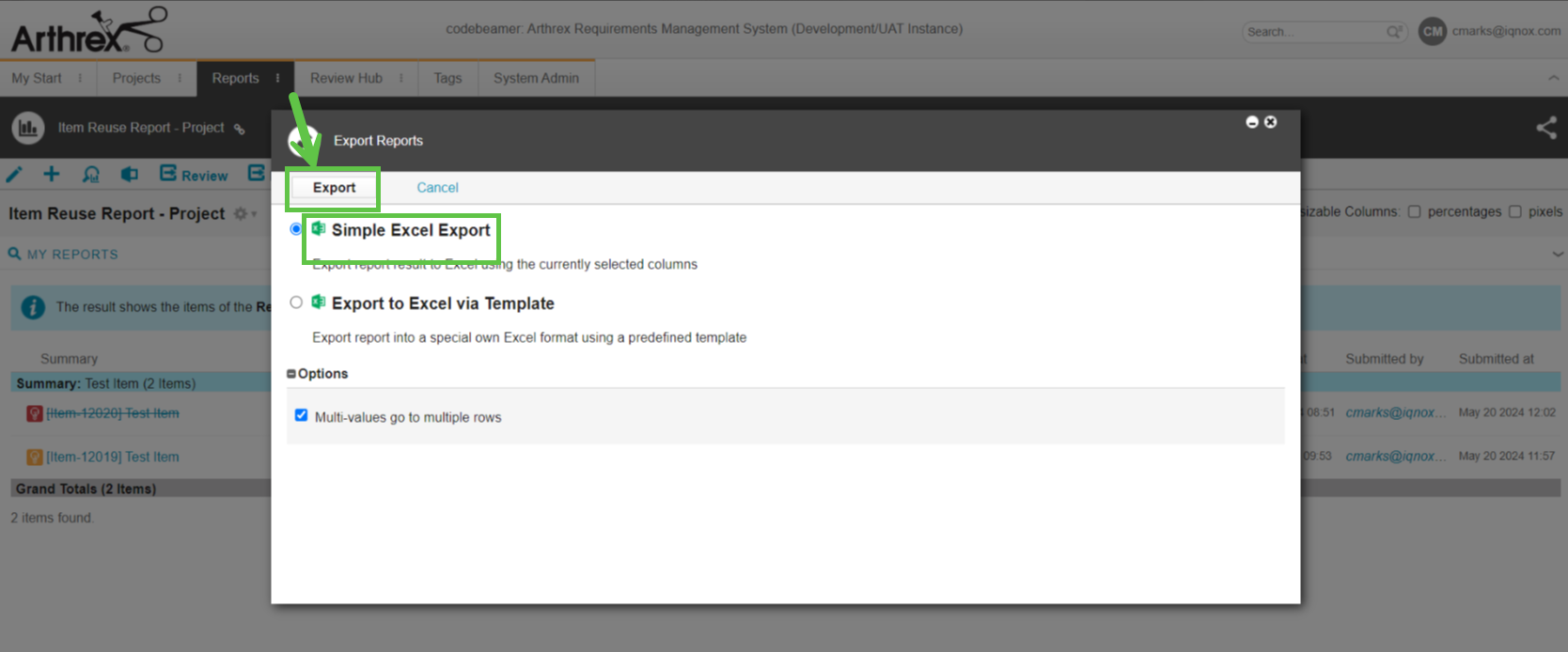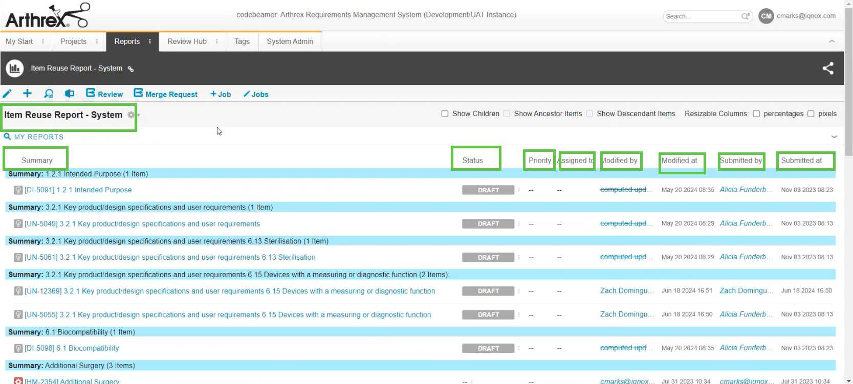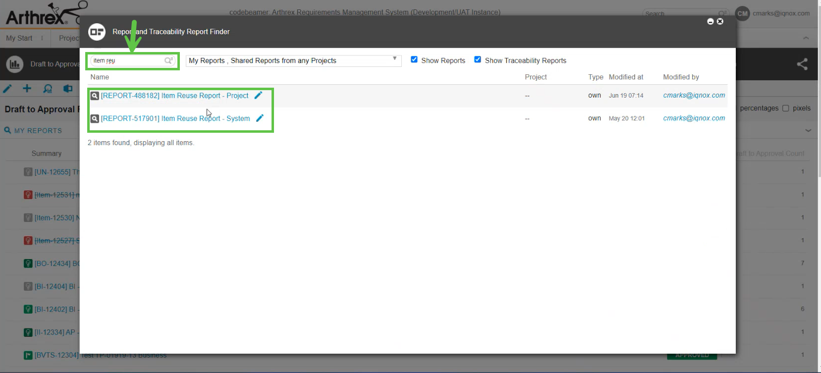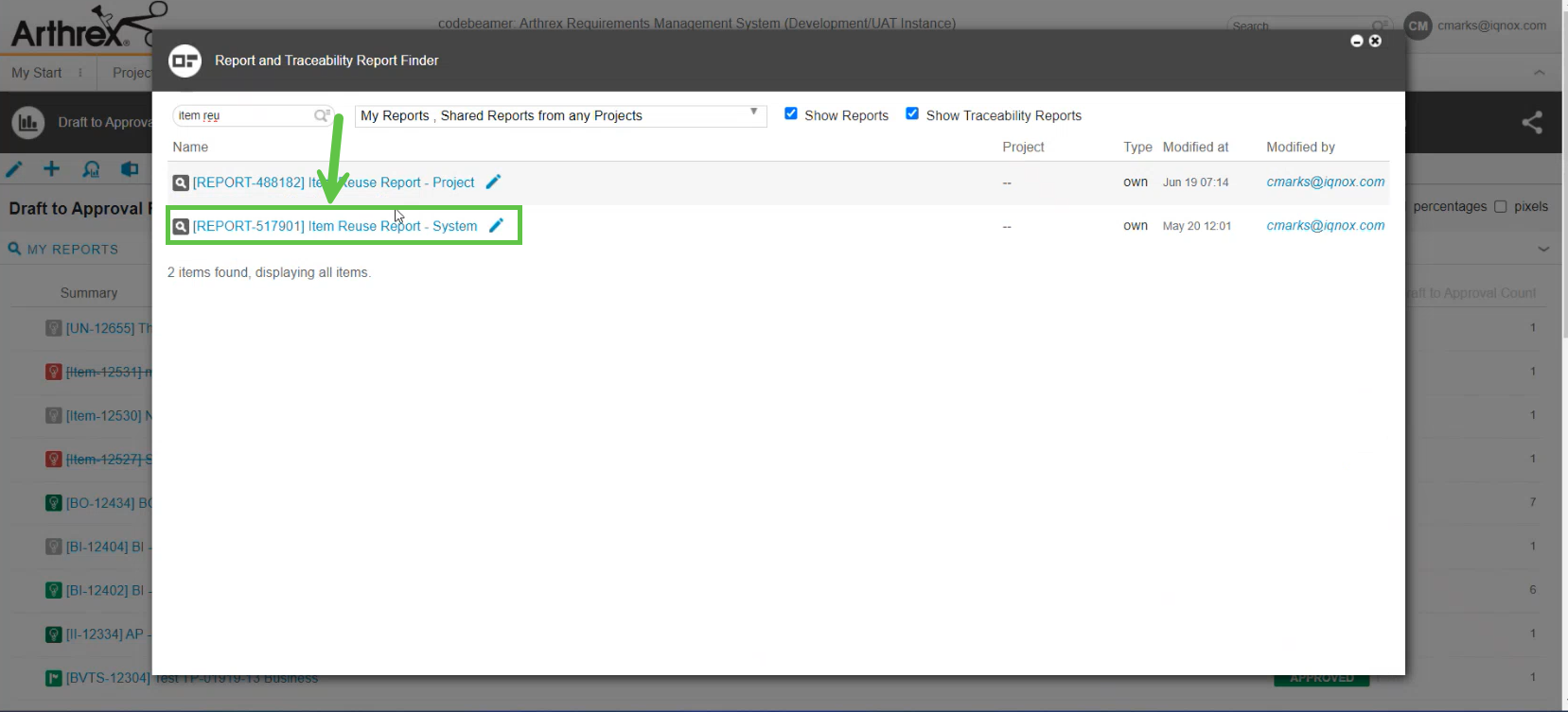Here, you will find two versions of the report, Project-specific and System-specific reports.