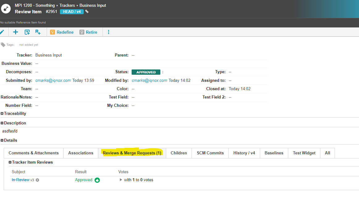 The reviews will show up in the tracker items themselves in their respective Reviews tab.