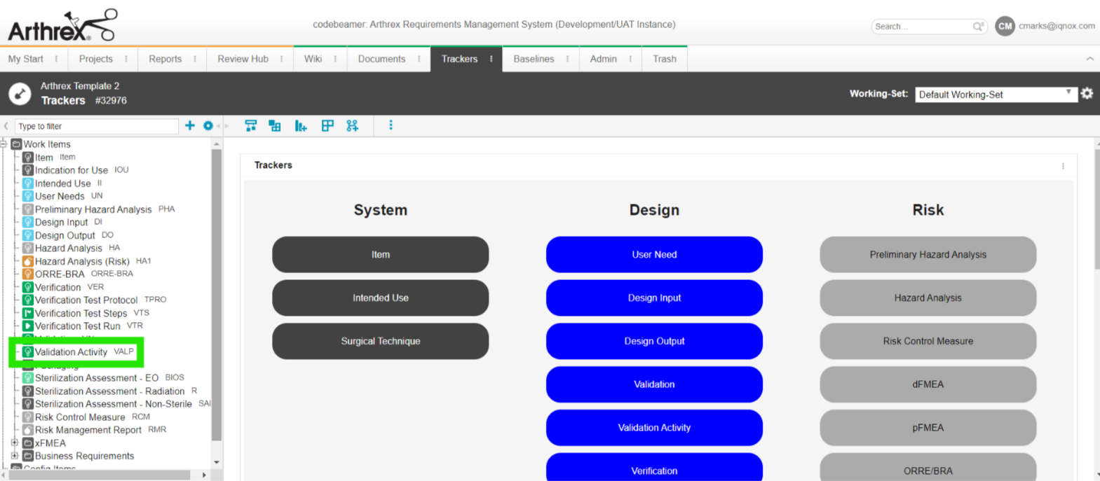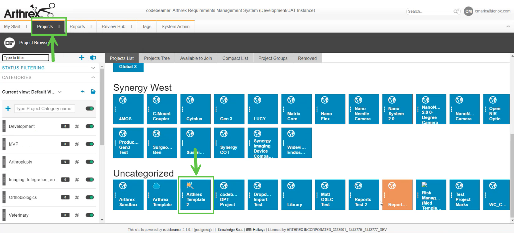 Go to the Projects tab and select the Project "Arthrex Template 2".